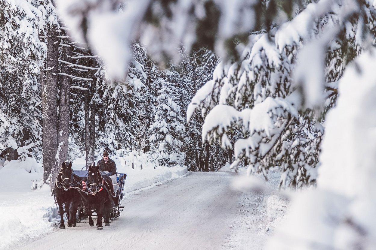 Tempo nach Wunsch: Rodelspaß mit Jubelgarantie, Bobvergnügen im Flutlicht oder Kutschenfahrtins verschneite Zugertal – zwei Wege, Lech spielerisch zu erleben.